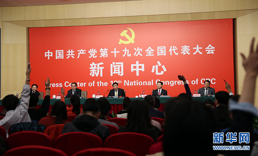 ??? 10月19日,十九大新聞中心舉辦集體采訪,邀請工信和通訊領域代表談走新型工業化道路。圖為集體采訪活動現場。新華網 郝廣鵬攝