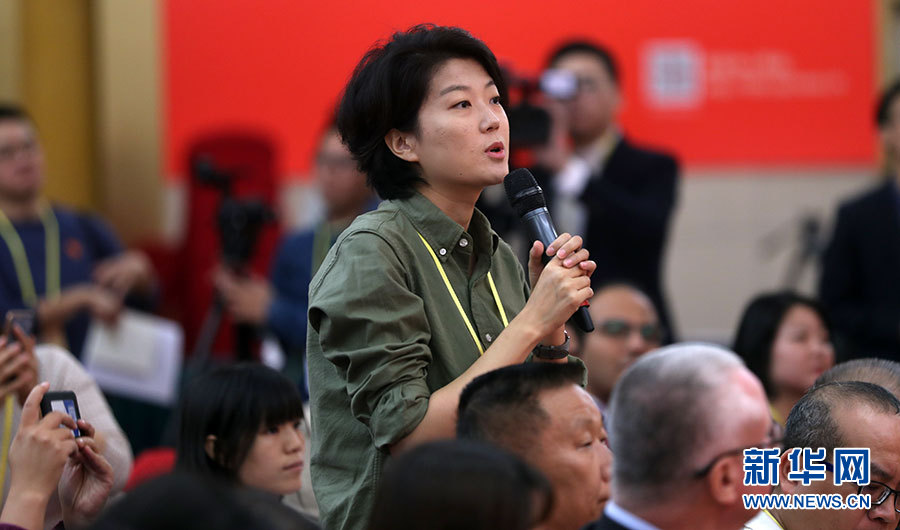 ??? 10月20日,十九大新聞中心舉辦集體采訪活動,主題為“實(shí)施創(chuàng)新驅(qū)動發(fā)展戰(zhàn)略”。圖為中國國際廣播電臺記者提問。新華網(wǎng) 郝廣鵬攝