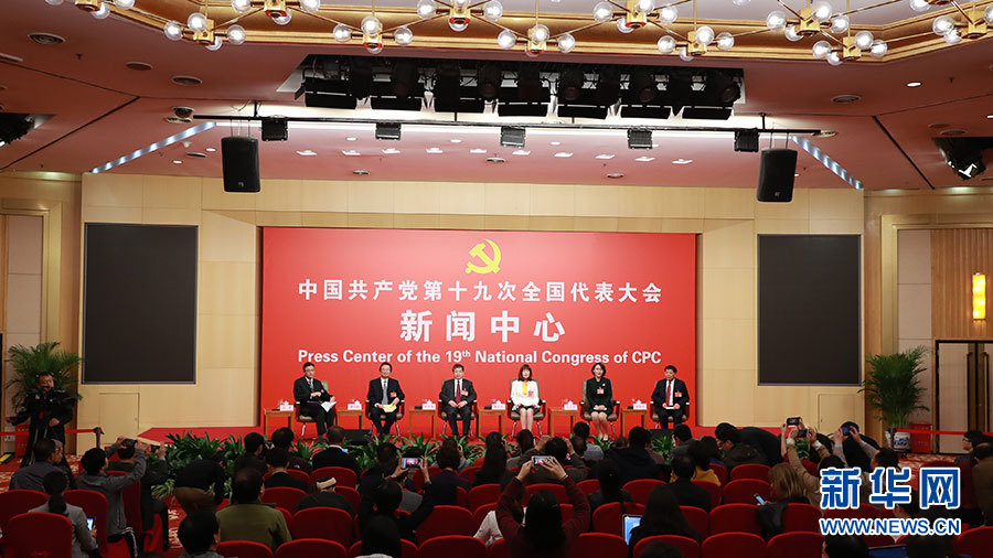10月21日,十九大新聞中心舉辦集體采訪活動,主題為“農業科技創新”。圖為集體采訪活動現場。新華網 郝廣鵬攝