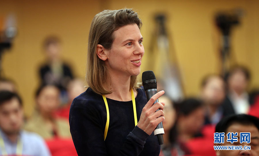 10月21日,十九大新聞中心舉辦集體采訪活動,主題為“農業科技創新”。圖為路透社記者提問。新華網 郝廣鵬攝