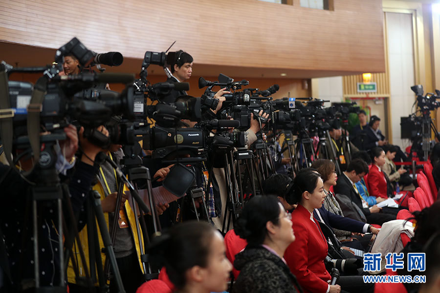 10月22日,十九大新聞中心在梅地亞中心二層新聞發布廳舉辦集體采訪活動,邀請教育領域代表談“教育綜合改革”。圖為集體采訪活動現場。新華網 郝廣鵬攝
