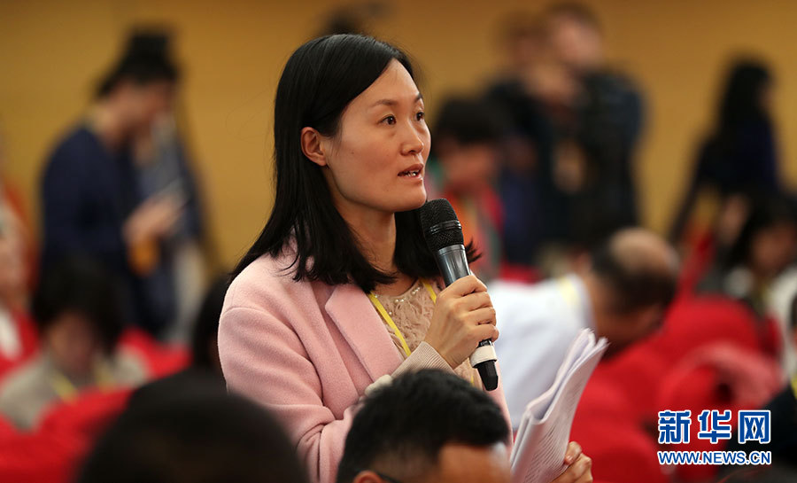 10月22日,十九大新聞中心在梅地亞中心二層新聞發布廳舉辦集體采訪活動,邀請教育領域代表談“教育綜合改革”。圖為中國婦女報記者提問。新華網 郝廣鵬攝