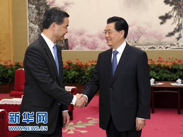 ?? 新華網(wǎng)快訊:國(guó)家主席胡錦濤21日下午在中南海會(huì)見了來京述職的香港特別行政區(qū)行政長(zhǎng)官梁振英。