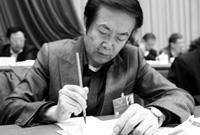 政協委員袁熙坤用毛筆做筆記 網友贊“有范兒”