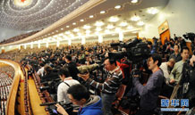 2012年3月4日上午11時,十一屆全國人大五次會議在人民大會堂三樓金色大廳舉行新聞發布會,由大會發言人就會議議程和人大工作相關的問題回答中外記者的提問。