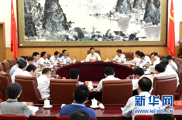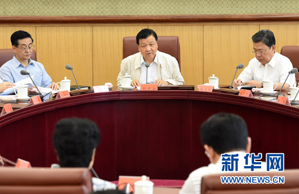 ??? 7月5日,中共中央政治局常委、中央黨的群眾路線教育實踐活動領導小組組長劉云山在北京主持召開中央黨的群眾路線教育實踐活動領導小組會議。新華社記者 劉建生 攝