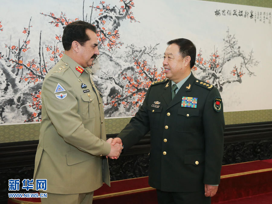 ??? 1月25日,中央軍委副主席范長龍在北京八一大樓會見來訪的巴基斯坦陸軍參謀長拉希勒。 新華社記者 丁林 攝