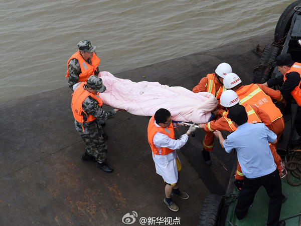 新華網北京6月2日電 據新華社“新華視點”微博報道,6月2日,救援人員在沉船現場救起一名幸存者。 (新華社記者肖藝九攝)?