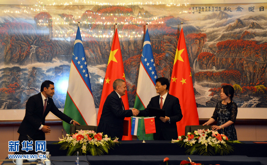 6月15日,中共中央政治局委員、中央政法委書記、中國和烏茲別克斯坦政府間合作委員會中方主席孟建柱與委員會烏方主席、烏茲別克斯坦第一副總理阿齊莫夫在山東省日照市共同主持召開中烏政府間合作委員會第三次會議。這是會議結(jié)束后,孟建柱和阿齊莫夫共同簽署《會議紀(jì)要》。新華社記者范長國攝