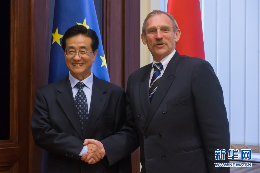 ??? 9月11日,中共中央書記處書記、中央紀(jì)委副書記趙洪祝(左)在匈牙利首都布達(dá)佩斯會(huì)見匈牙利內(nèi)務(wù)部長(zhǎng)平特爾。應(yīng)匈牙利執(zhí)政黨青民盟邀請(qǐng),中共中央書記處書記、中央紀(jì)委副書記趙洪祝率中共代表團(tuán)于9月10日至11日訪問匈牙利。新華社發(fā)(弗爾季·奧蒂洛攝)
