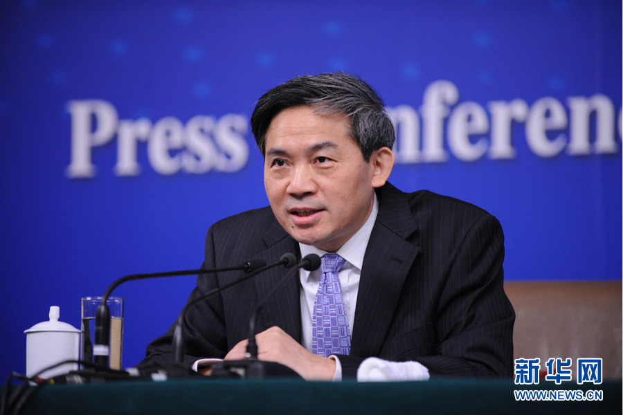 ??? 十二屆全國人大三次會議新聞中心于3月8日(星期日)10時在梅地亞中心多功能廳舉行記者會,邀請外交部部長王毅就中國的外交政策和對外關系相關問題回答中外記者提問。圖為全國人大常委會辦公廳新聞局局長、記者會主持人何紹仁。新華網/中國政府網 翟子赫 攝