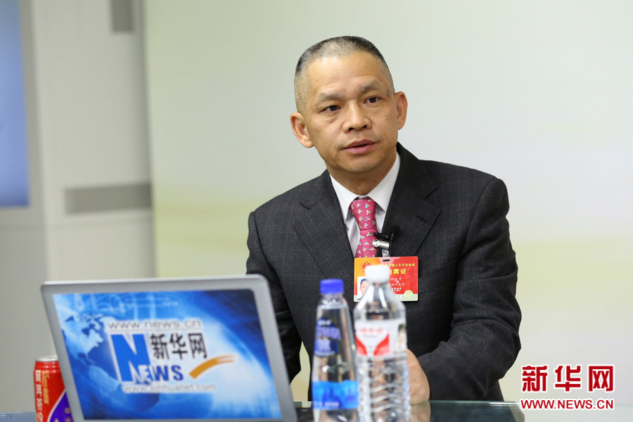 ????2015年3月13日,全國人大代表、湖南科力遠新能源股份有限公司董事長鐘發平做客新華會客廳。新華網 李江 攝?