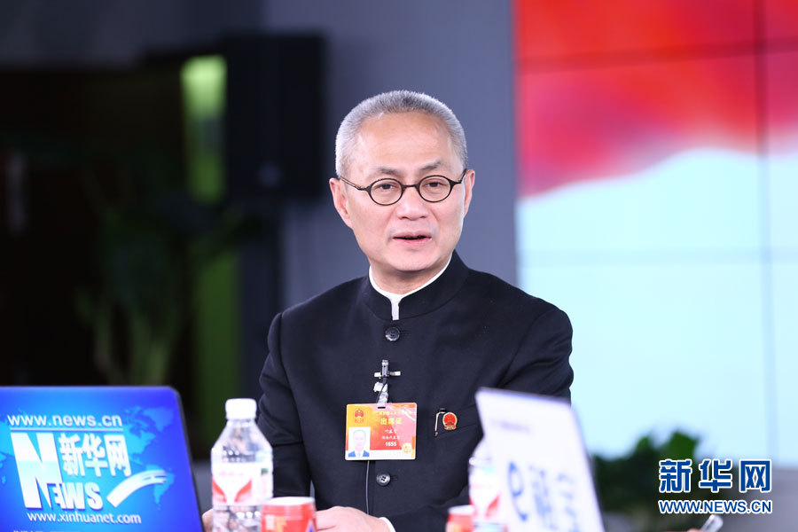 ??? 2015年3月14日,全國人大代表、鳳凰古城文化旅游投資股份有限公司董事長葉文智做客新華會客廳。圖為葉文智在訪談中。新華網 李江 攝