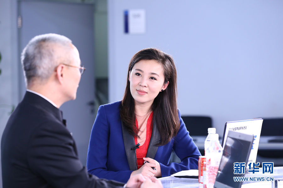 ??? 2015年3月14日,全國人大代表、鳳凰古城文化旅游投資股份有限公司董事長葉文智做客新華會客廳。圖為訪談進行中。新華網 李江 攝