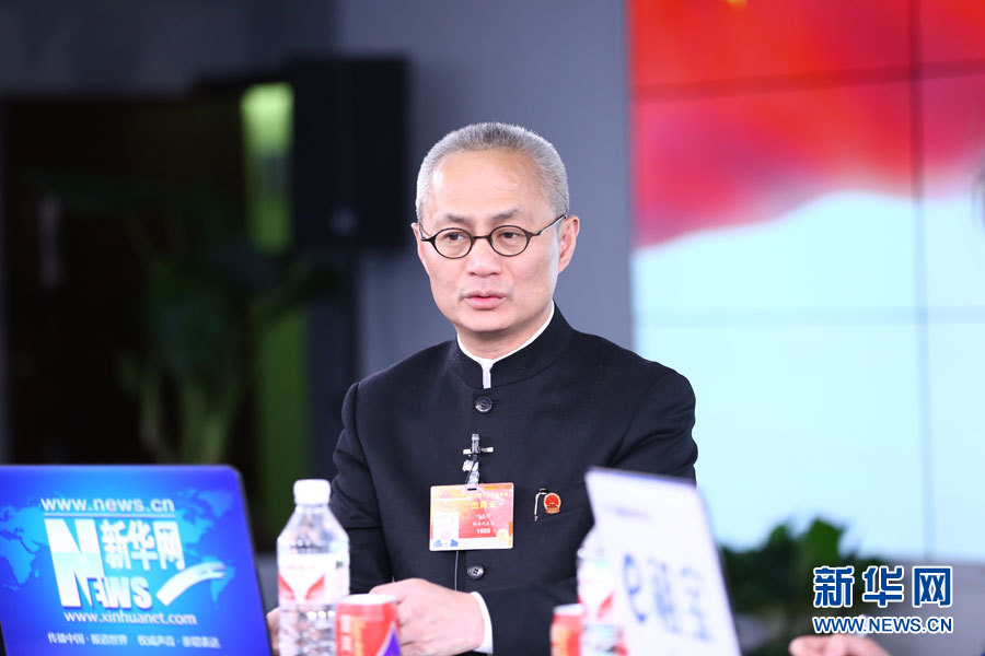 ??? 2015年3月14日,全國人大代表、鳳凰古城文化旅游投資股份有限公司董事長葉文智做客新華會客廳。圖為葉文智在訪談中。新華網(wǎng) 李江 攝