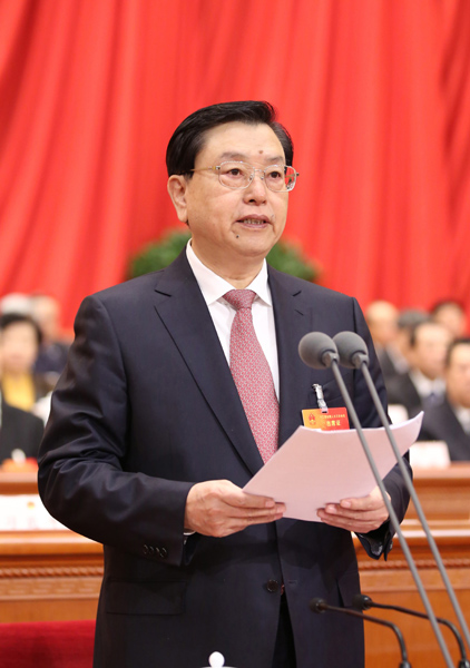 大會完成各項議程后,張德江發表講話。他說,十二屆全國人大三次會議充分發揚民主,嚴格依法辦事,保持良好會風,進一步統一了思想、明確了任務、堅定了信心,開得很成功。