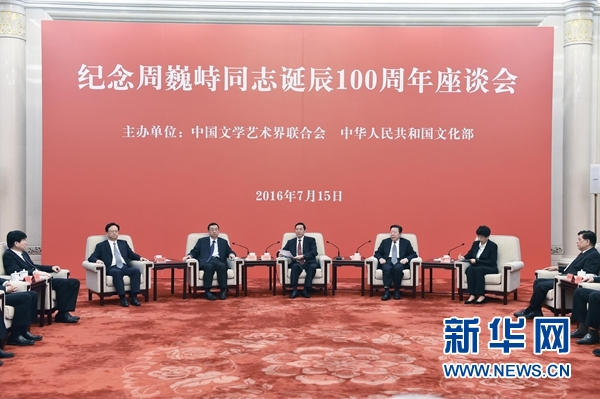 新華社北京7月15日電 紀念周巍峙同志誕辰100周年座談會7月15日在京舉行。中共中央政治局委員、中央書記處書記、中宣部部長劉奇葆出席座談會并講話。中國文聯主席孫家正出席。