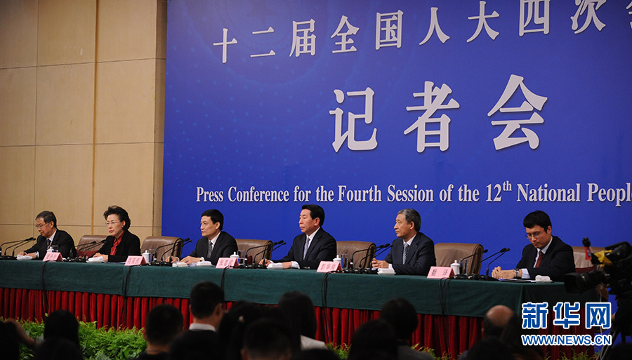 ?????十二屆全國人大四次會議新聞中心于3月12日(星期六)14時30分在梅地亞中心多功能廳舉行記者會,邀請國務(wù)院國有資產(chǎn)監(jiān)督管理委員會主任肖亞慶、副主任張喜武、副主任黃丹華和副秘書長、新聞發(fā)言人彭華崗就“國企改革”的相關(guān)問題回答中外記者的提問。圖為肖亞慶回答記者提問。新華網(wǎng)/中國政府網(wǎng) 陳杰 攝