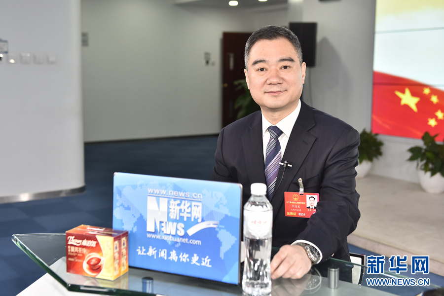 ?3月12日,全國人大代表,運城市市長王清憲做客新華網2016全國兩會特別訪談,與新華網網友在線交流。圖為王清憲在訪談現場。新華網 付宇鵬 攝