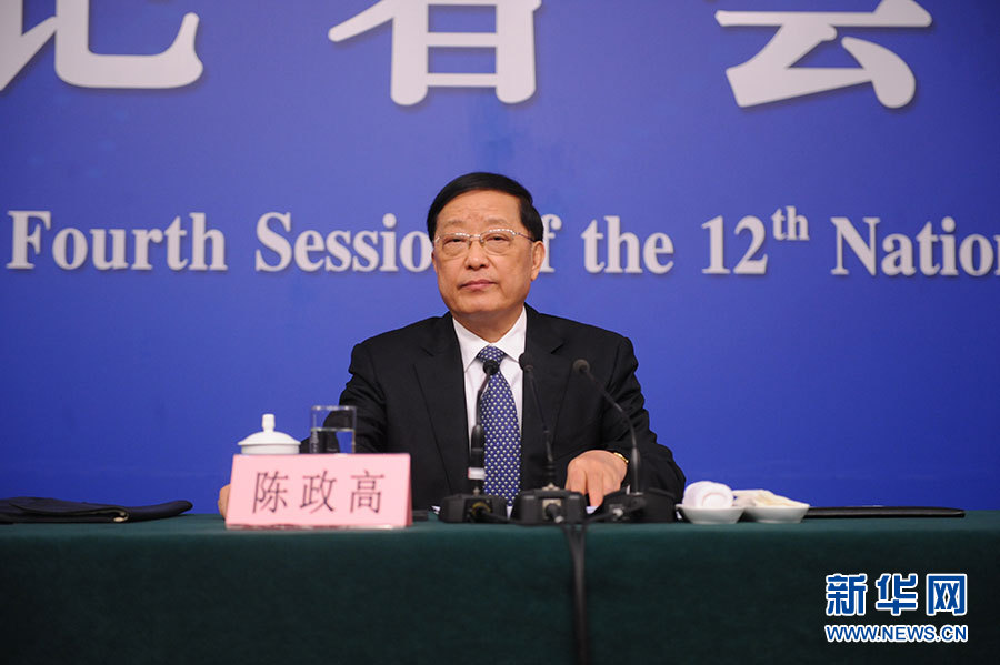 十二屆全國人大四次會議新聞中心于3月15日(星期二)10時在梅地亞中心多功能廳舉行記者會,邀請住房和城鄉(xiāng)建設(shè)部部長陳政高、副部長陸克華、副部長倪虹就“棚戶區(qū)改造和房地產(chǎn)工作”的相關(guān)問題回答中外記者的提問。圖為陳政高回答記者提問。新華網(wǎng)/中國政府網(wǎng) 陳杰 攝