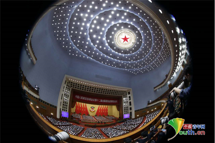 中國人民政治協商會議第十二屆全國委員會第四次會議閉幕式在人民大會堂舉行。中國青年網記者 張炎良攝