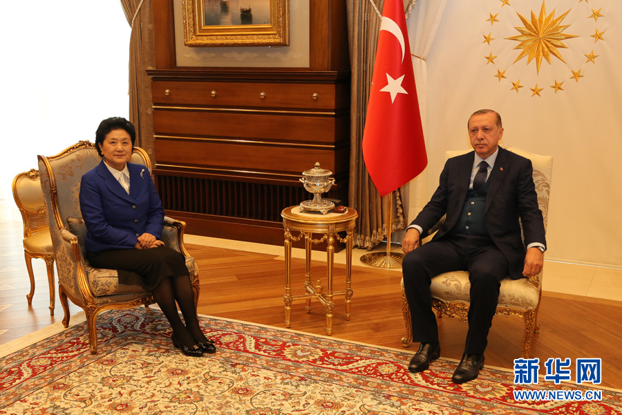 ????4月18日,土耳其總統(tǒng)埃爾多安在安卡拉會(huì)見中國國務(wù)院副總理劉延?xùn)|。 新華社記者 秦彥洋攝