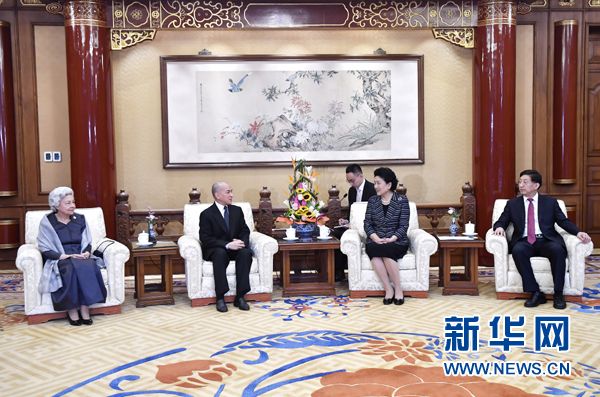 8月23日,國務院副總理劉延東在北京會見來華例行查體休養的柬埔寨國王西哈莫尼和太后莫尼列。新華社記者 燕雁 攝