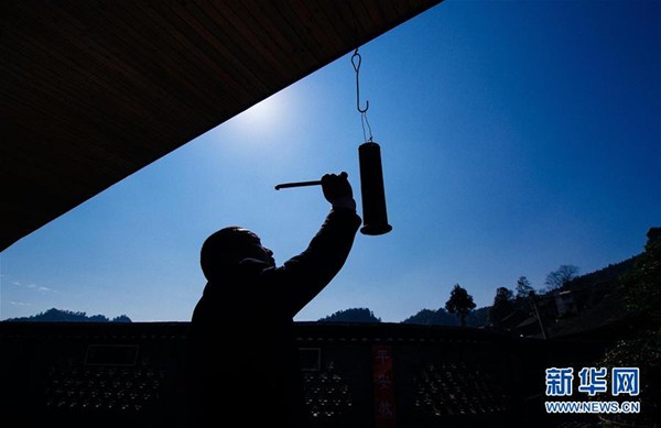 11月8日,湖南省花垣縣十八洞小學教師吳忠碧敲響上課鈴。 新華社記者 劉金海 攝