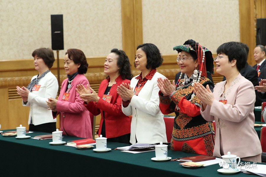習近平代表黨中央、國務院,向女代表、女委員、女工作人員和全國各族各界婦女同胞,致以節日的祝賀和誠摯的祝福。