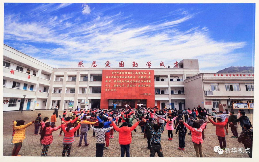 蘆山隆興中心校寬闊整潔,這是孩子們在美麗的校園里做操。