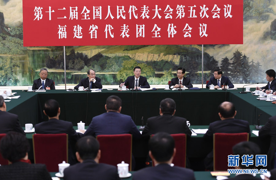 3月10日,中共中央政治局常委、國務院副總理張高麗參加十二屆全國人大五次會議福建代表團的審議。 新華社記者 燕雁 攝