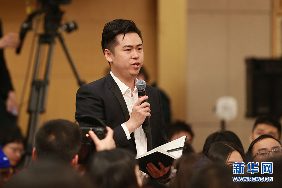 3月11日,十二屆全國人大五次會議新聞中心舉行記者會,邀請科技部部長萬鋼、秘書長徐建培就“2016年創(chuàng)新驅(qū)動發(fā)展戰(zhàn)略實施進展成效和2017年重點工作”的相關(guān)問題回答中外記者的提問。圖為深圳衛(wèi)視記者提問。新華網(wǎng)/中國政府網(wǎng) 王健 攝