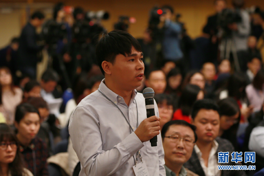 3月14日,十二屆全國人大五次會議新聞中心舉行記者會,邀請國家質(zhì)檢總局局長支樹平、副局長兼國家認證認可監(jiān)督管理委員會主任孫大偉、國家標準化管理委員會主任田世宏就“質(zhì)量提升”的相關(guān)問題回答中外記者的提問。圖為光明日報記者提問。新華網(wǎng)/中國政府網(wǎng) 傅義洲 攝?