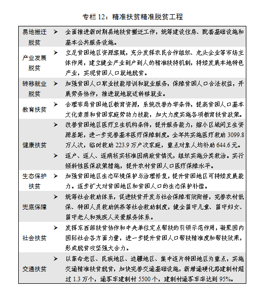 (八)加快發展社會事業和改善民生,人民生活水平持續提升。全力推進精準扶貧精準脫貧,加強社會政策托底,努力提高基本公共服務均等化水平。