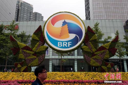 資料圖:2017年5月8日,北京建國(guó)路上的“一帶一路”主題花壇。 中新社記者 李慧思 攝
