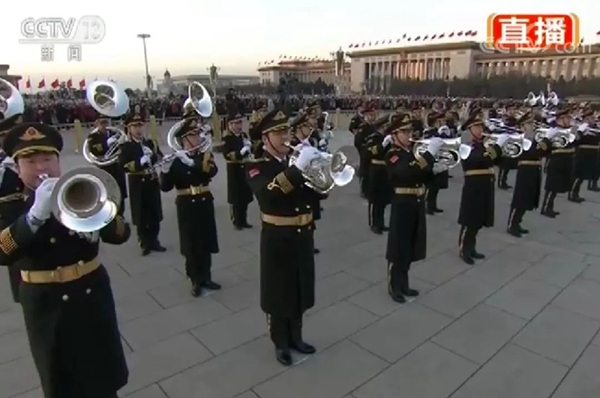 軍樂團(tuán)奏響《歌唱祖國》的動(dòng)人旋律 天安門廣場新年升國旗儀式圓滿結(jié)束