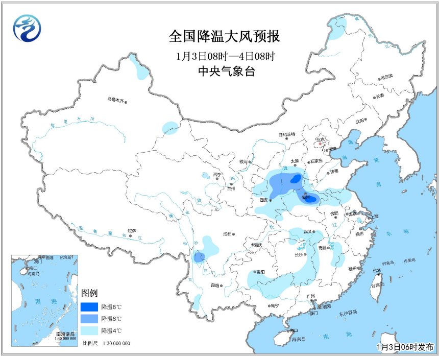 張濤:氣象監(jiān)測顯示,2日11時至3日11時,甘肅南部、寧夏中南部、陜西中部、河南中部、湖北西北部出現小雪,局地出現3~4毫米的中雪,積雪深度達2~4厘米。江蘇、安徽、湖北東部、湖南、貴州等地出現小到中雨,云南西部和南部出現中到大雨。
