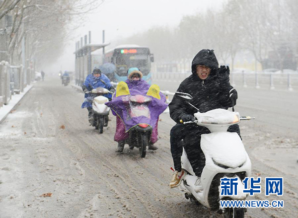 1月3日,在安徽省阜陽市,市民冒雪出行。當日,受冷空氣影響,我國多地迎來降雪。 新華社發(戴文學 攝)