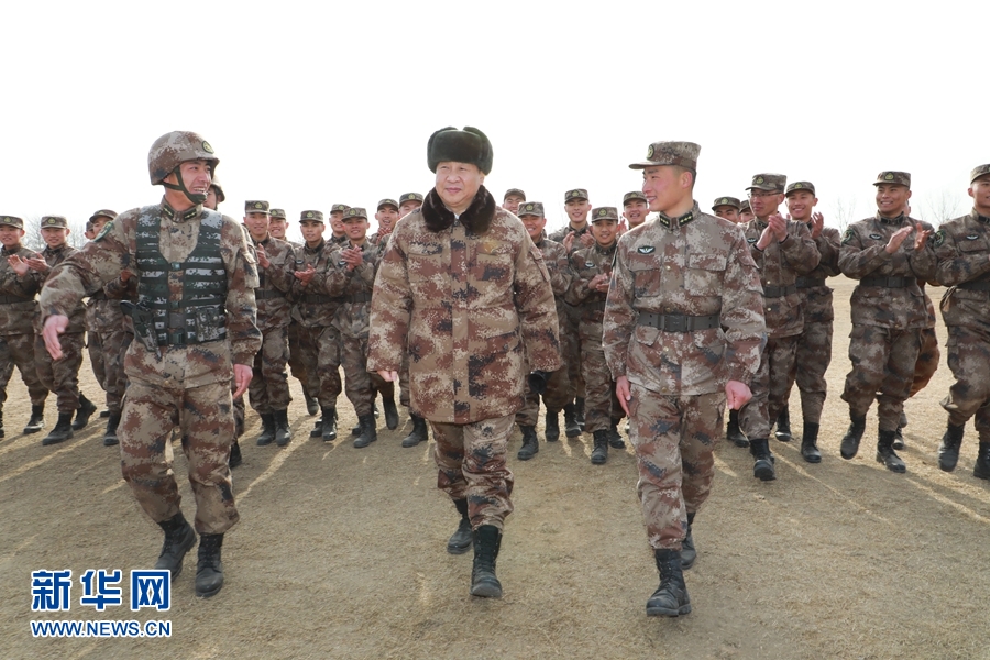 1月3日,中共中央總書記、國家主席、中央軍委主席習近平視察中部戰區陸軍某師。這是習近平同該師偵察英雄楊子榮生前所在連官兵親切交談。新華社記者李剛攝