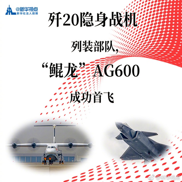 新華網北京1月13日電 朱日和沙場點兵,首艘國產航母、萬噸大型驅逐艦首艦下水,殲20隱身戰機列裝、“鯤龍”AG600首飛……2017年,我國國防科技工業發生了哪些大事?一起為國防事業科研創新點贊?。〒靶氯A視點”微博報道)
