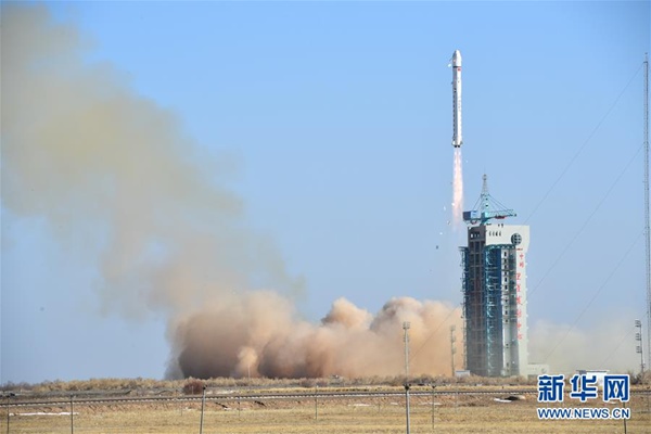 2018年1月13日15時10分,我國在酒泉衛(wèi)星發(fā)射中心用長征二號丁運載火箭,成功將陸地勘查衛(wèi)星三號發(fā)射升空,衛(wèi)星進入預(yù)定軌道。新華社發(fā)(汪江波 攝)