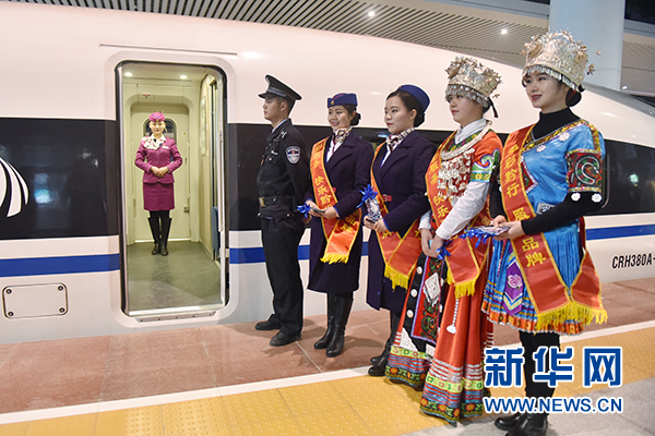 1月25日,在貴陽北站,渝貴鐵路從貴陽北到重慶西的D8592次首發動車乘務員在等待旅客乘車。新華社記者 歐東衢攝