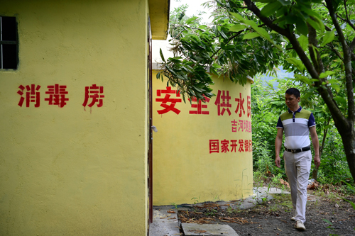 2017年6月12日,陜西省安康市工作人員在漢濱區(qū)吉河鎮(zhèn)吉河壩社區(qū)巡視安全飲水工程的管理站房和水塔 邵瑞攝