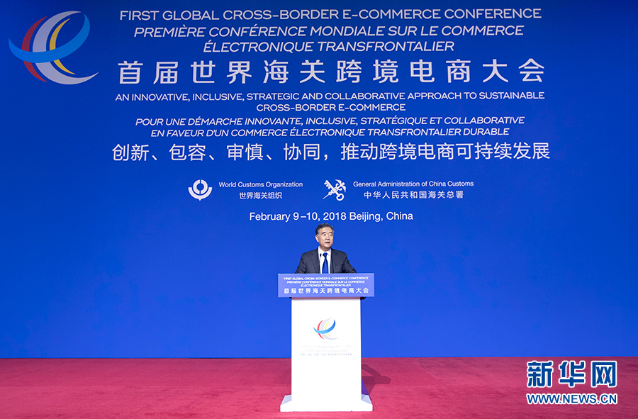 2月9日,中共中央政治局常委、國務(wù)院副總理汪洋在北京出席首屆世界海關(guān)跨境電商大會并發(fā)表主旨演講。 新華社記者王曄攝