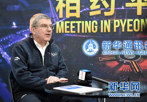 2月12日下午,國際奧委會主席巴赫到平昌冬奧會主新聞中心新華社發(fā)稿中心看望新華社采編人員,并在接受專訪時現(xiàn)學(xué)中文“春節(jié)快樂”向中國人民問好。圖為巴赫在演播室接受新華社記者專訪。(2月12日攝) 新華社記者 畢曉洋 攝