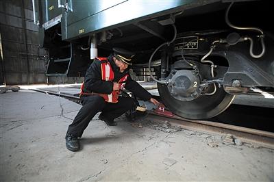 春運期間大量加開列車開行,??考娱_列車客車車廂的101站員工也忙碌了起來,這里最多的時候要停放170余輛客車車廂,看護客車、檢查防溜、岔道扳動、配合調車是站里的主要工作,57歲的趙志剛便是這個站上三名員工中的一員。 新京報記者 劉經宇