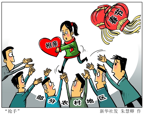春節(jié)期間,我國不少農(nóng)村地區(qū)出現(xiàn)“相親熱”。“新華視點”記者在山東、湖北、安徽等地鄉(xiāng)村調(diào)查發(fā)現(xiàn),農(nóng)村大齡男青年結(jié)婚難問題突出。