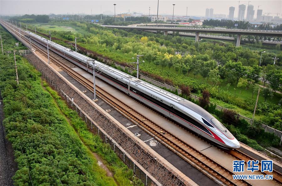 2017年8月21日,從北京南開(kāi)往天津的C2001次“復(fù)興號(hào)”中國(guó)標(biāo)準(zhǔn)動(dòng)車組駛?cè)胩旖蚴袇^(qū)。自當(dāng)日起,鐵路部門擴(kuò)大“復(fù)興號(hào)”動(dòng)車組列車開(kāi)行范圍,京津城際列車開(kāi)行19.5對(duì)“復(fù)興號(hào)”動(dòng)車組列車。新華社發(fā)(楊寶森 攝)