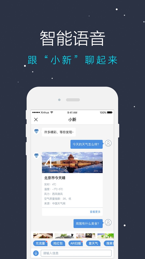 據(jù)悉,新華社客戶端還將進(jìn)一步向便民服務(wù)拓展,并接入智能語音交互,用戶可隨時語音呼叫“小新”,有問必答。