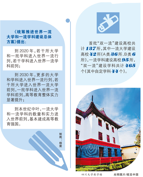 自2015年中央全面深化改革領(lǐng)導(dǎo)小組會議審議通過《統(tǒng)籌推進(jìn)世界一流大學(xué)和一流學(xué)科建設(shè)總體方案》以來,“雙一流”一直是牽動眾多高校目光的關(guān)鍵詞:2017年9月,“雙一流”建設(shè)名單公布;2017年歲末,眾多入選高校紛紛公布自己的一流大學(xué)建設(shè)方案,“雙一流”建設(shè)正式破土動工;今年政府工作報告提出,以經(jīng)濟(jì)社會發(fā)展需要為導(dǎo)向,優(yōu)化高等教育結(jié)構(gòu),加快“雙一流”建設(shè),支持中西部建設(shè)有特色、高水平大學(xué)。